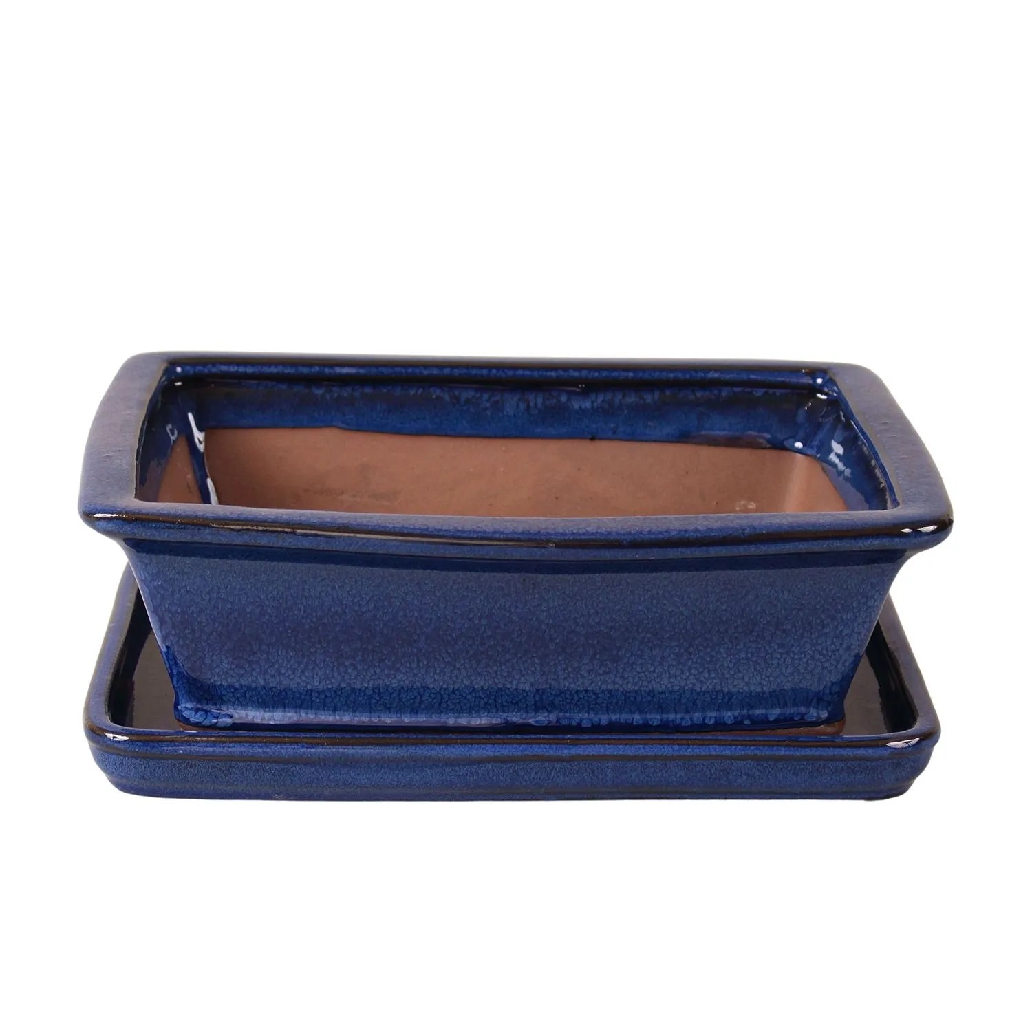 Donica szkliwiona Bonsai niebieska - 27x9,5 cm