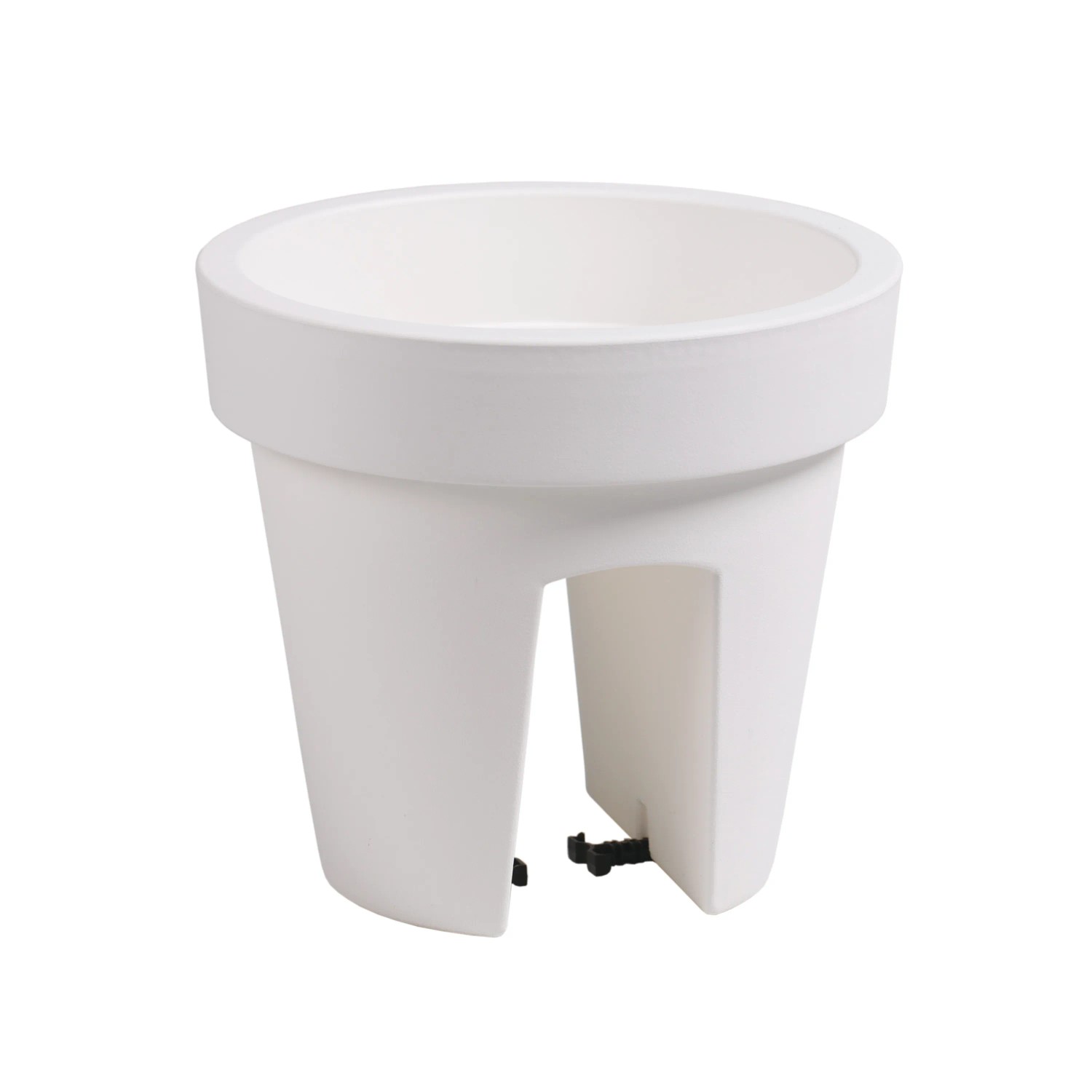 Doniczka Lofly Raili biała marki Prosperplast. Fantazyjny wygląd, atrakcyjna kolorystyka i niezwykle praktyczne mocowania, czynią okrągłą doniczkę Lofly Railing piękną ozdobą tarasów, altan i balkonów. Skrzynka na balustradę / na barierkę to nowatorskie rozwiązanie wśród tego rodzaju doniczek - nasadzona na balustradę będzie zdobić ją z obu stron. Tradycyjny kształt i ozdobne wykończenie górnego brzegu, dodają doniczce szczególnego uroku i sprawiają, że będzie pięknie prezentować się szczególnie na zaokrąglonych balustradach.
