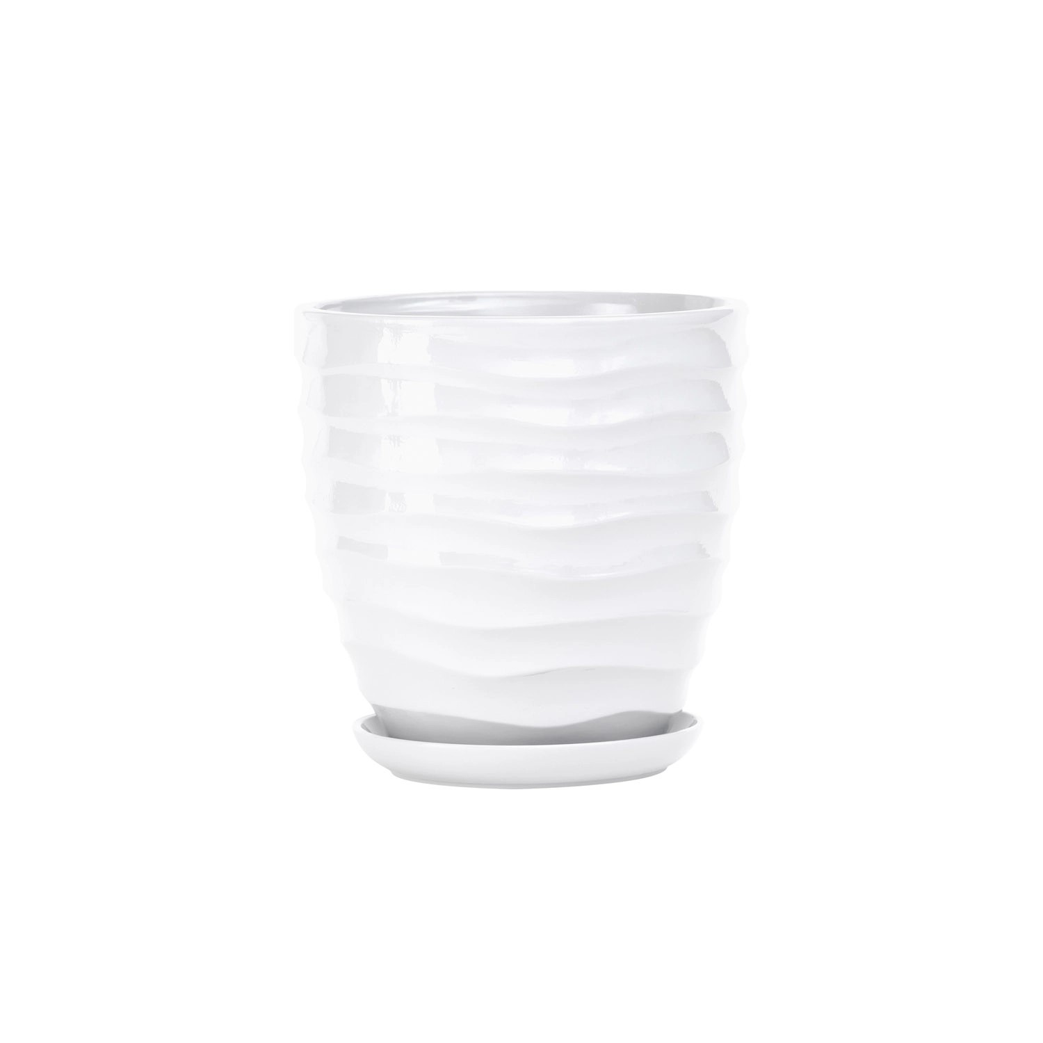 Doniczka z podstawką Duna biały połysk - 14 cm