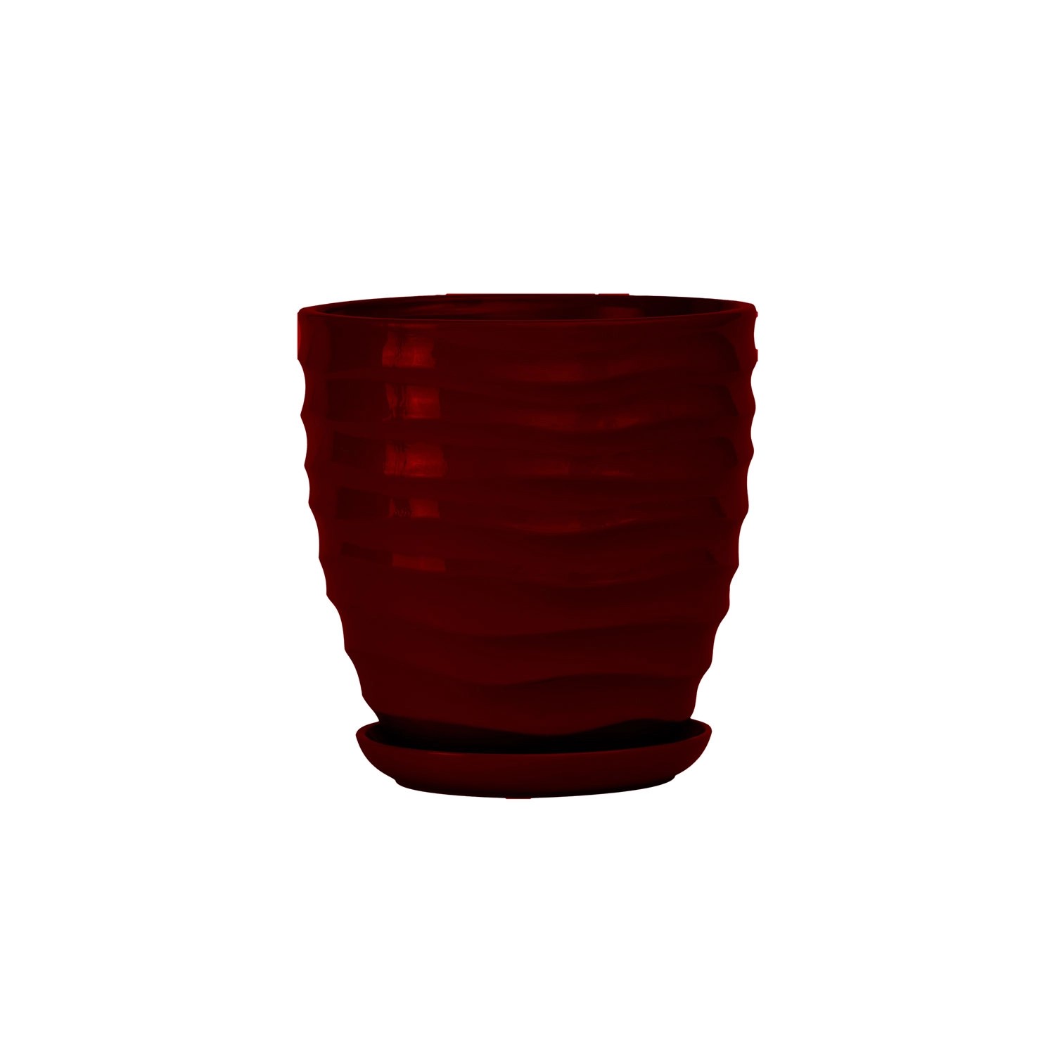 Doniczka z podstawką Duna bordowy połysk - 21 cm