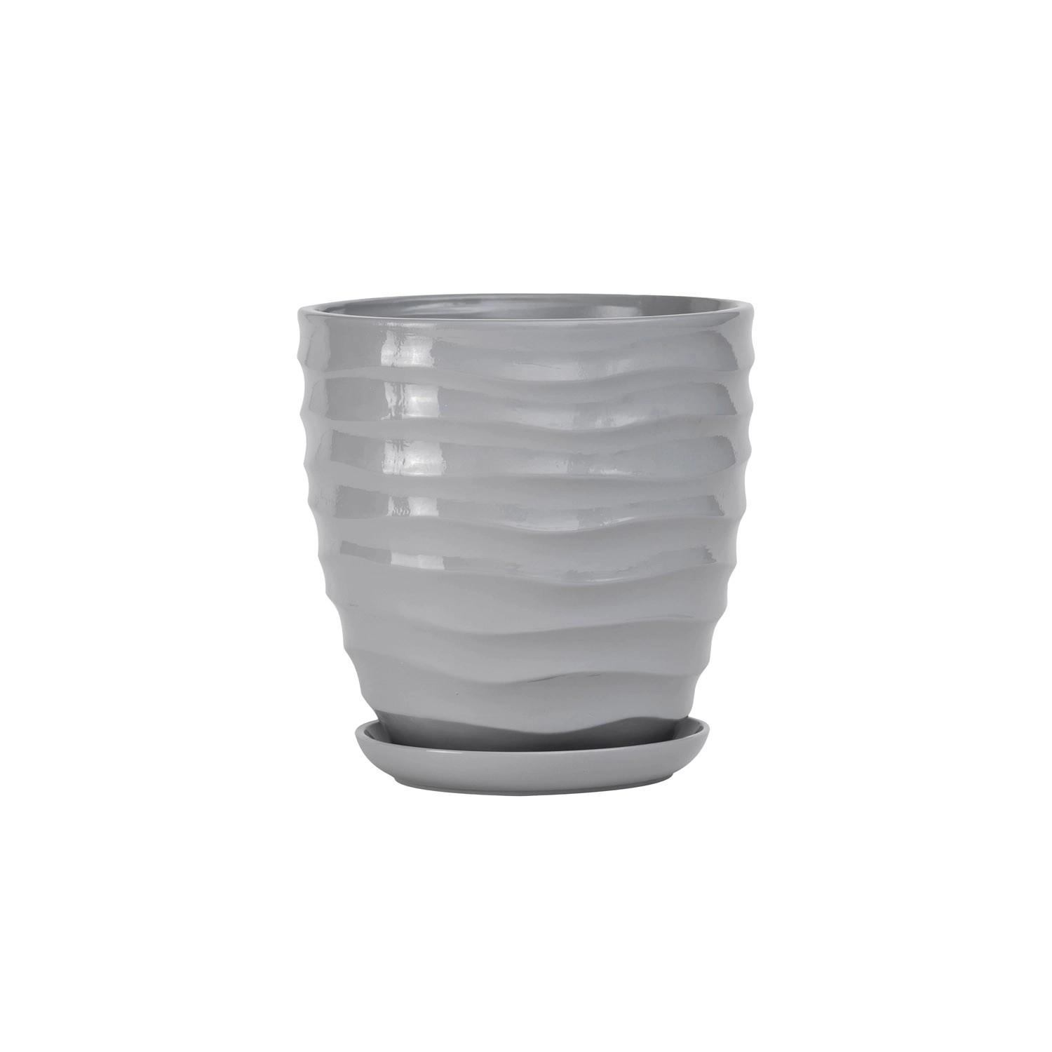 Doniczka z podstawką Duna szary połysk - 25,5 cm
