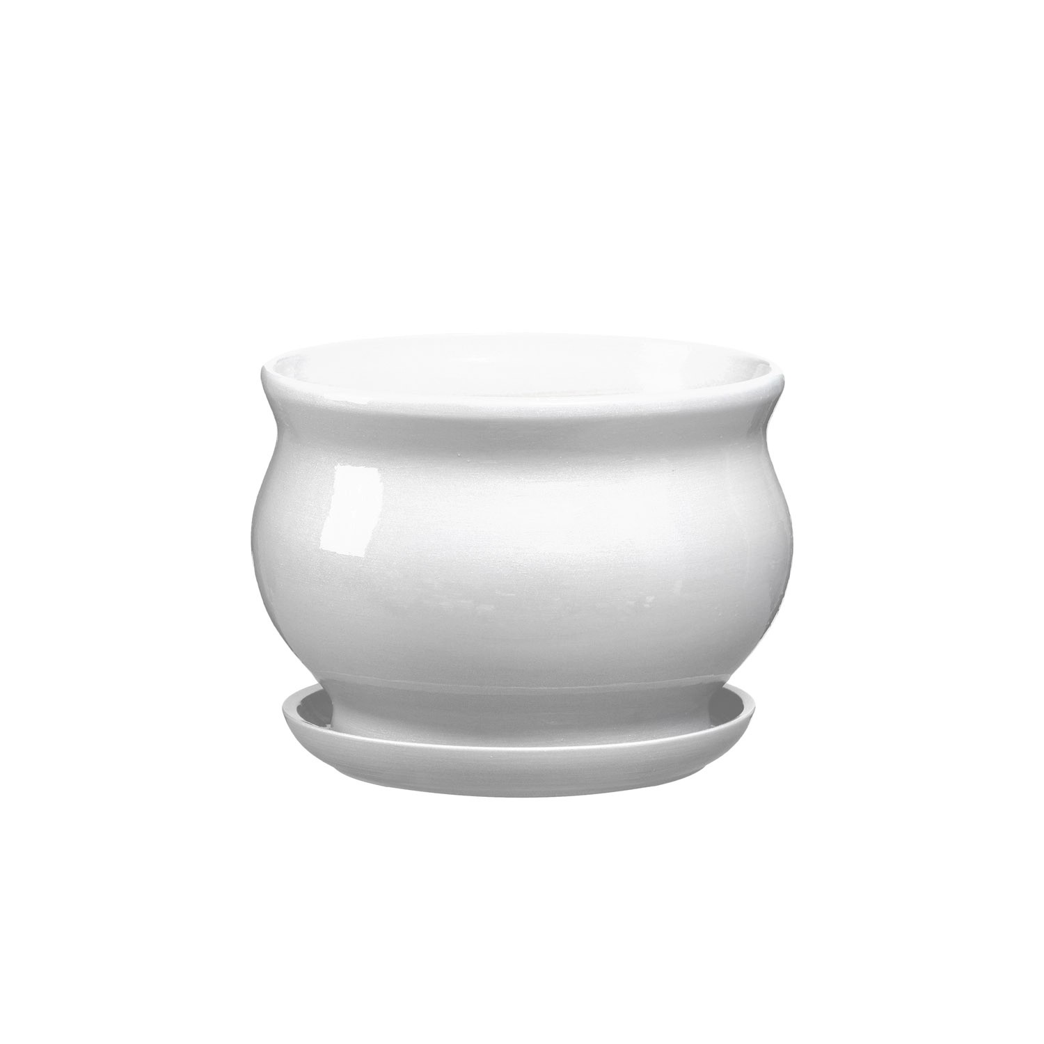 Doniczka z podstawką Kokarda biały połysk - 13 cm