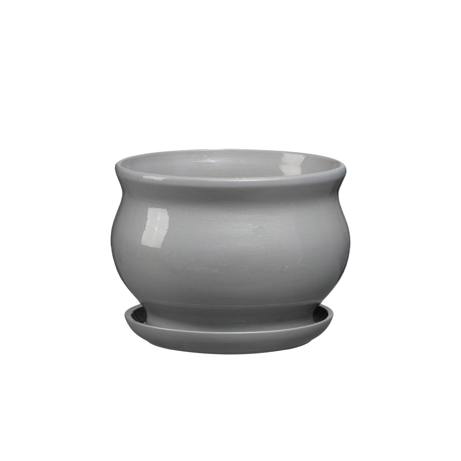 Doniczka z podstawką Kokarda szary połysk - 17,5 cm