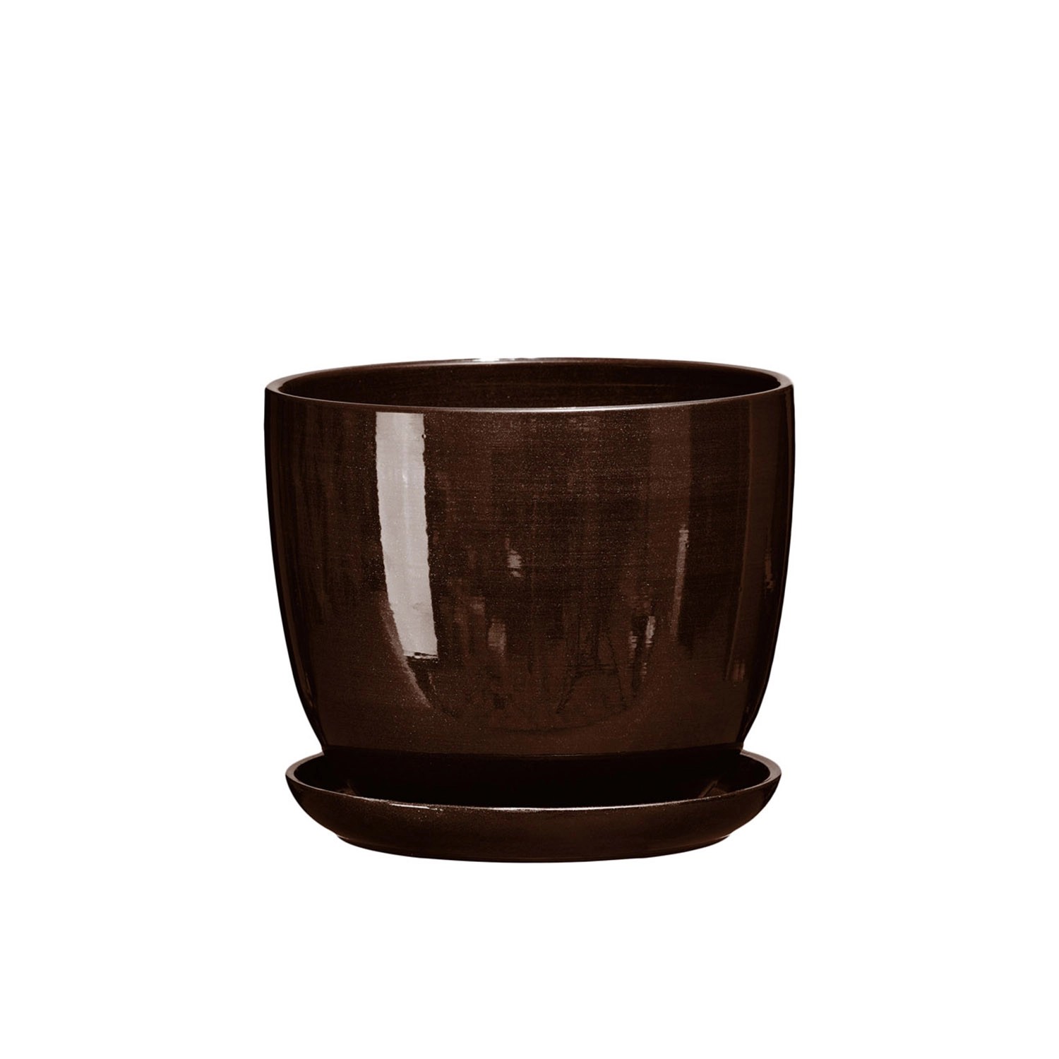 Doniczka z podstawką Sofia brąz połysk - 21 cm
