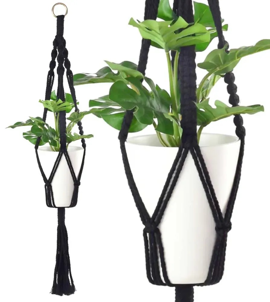 Makrama na doniczkę czarna L
