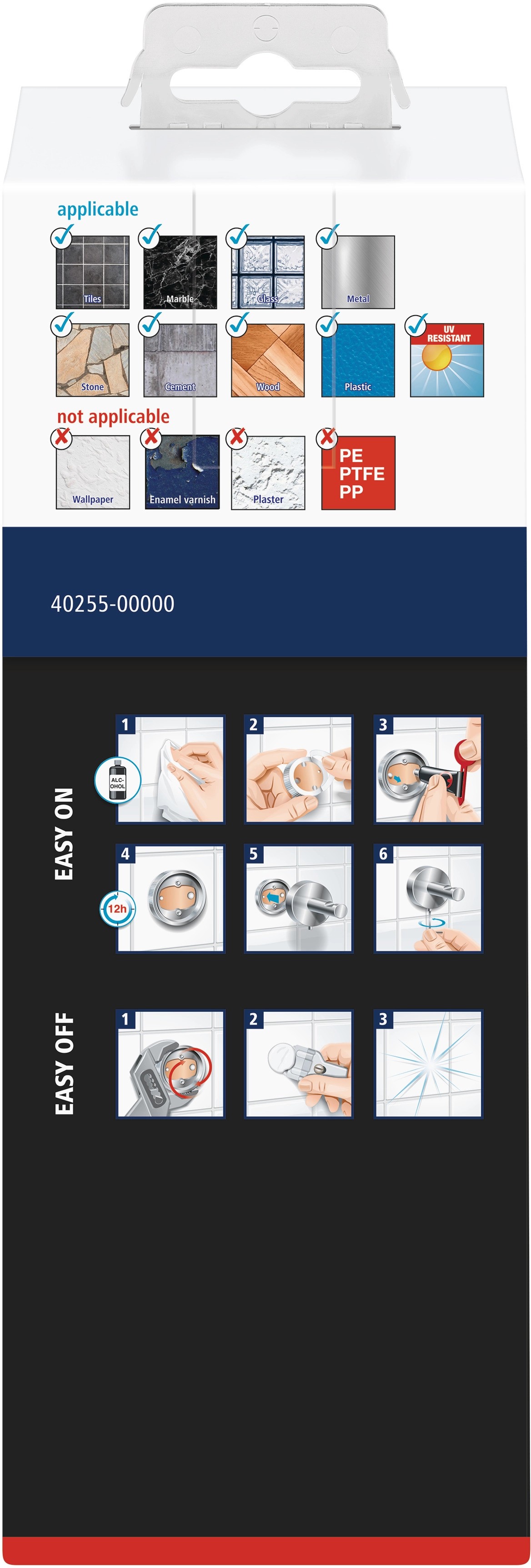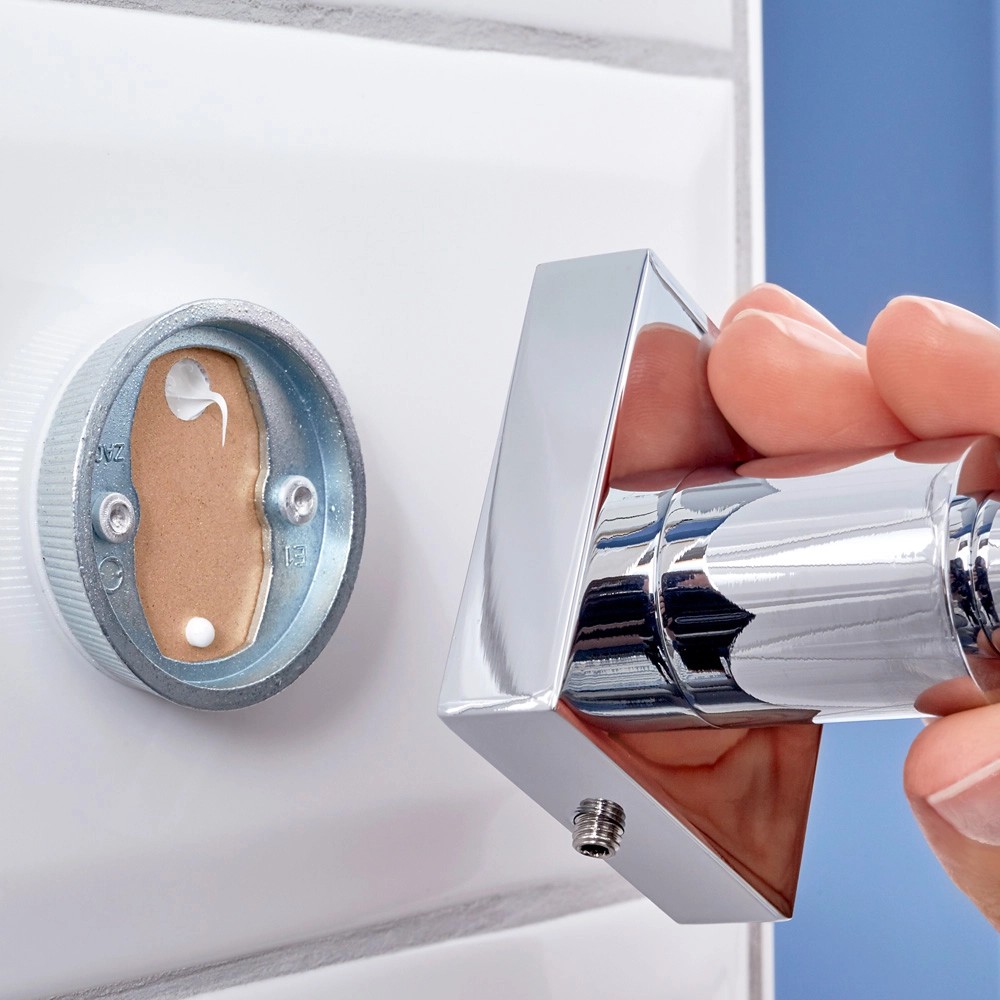 Zalecane powierzchnie mocowania: płytki, marmur, szkło, metal, kamień, cement, drewno, plastik (oprócz PE, PTFE, PP).