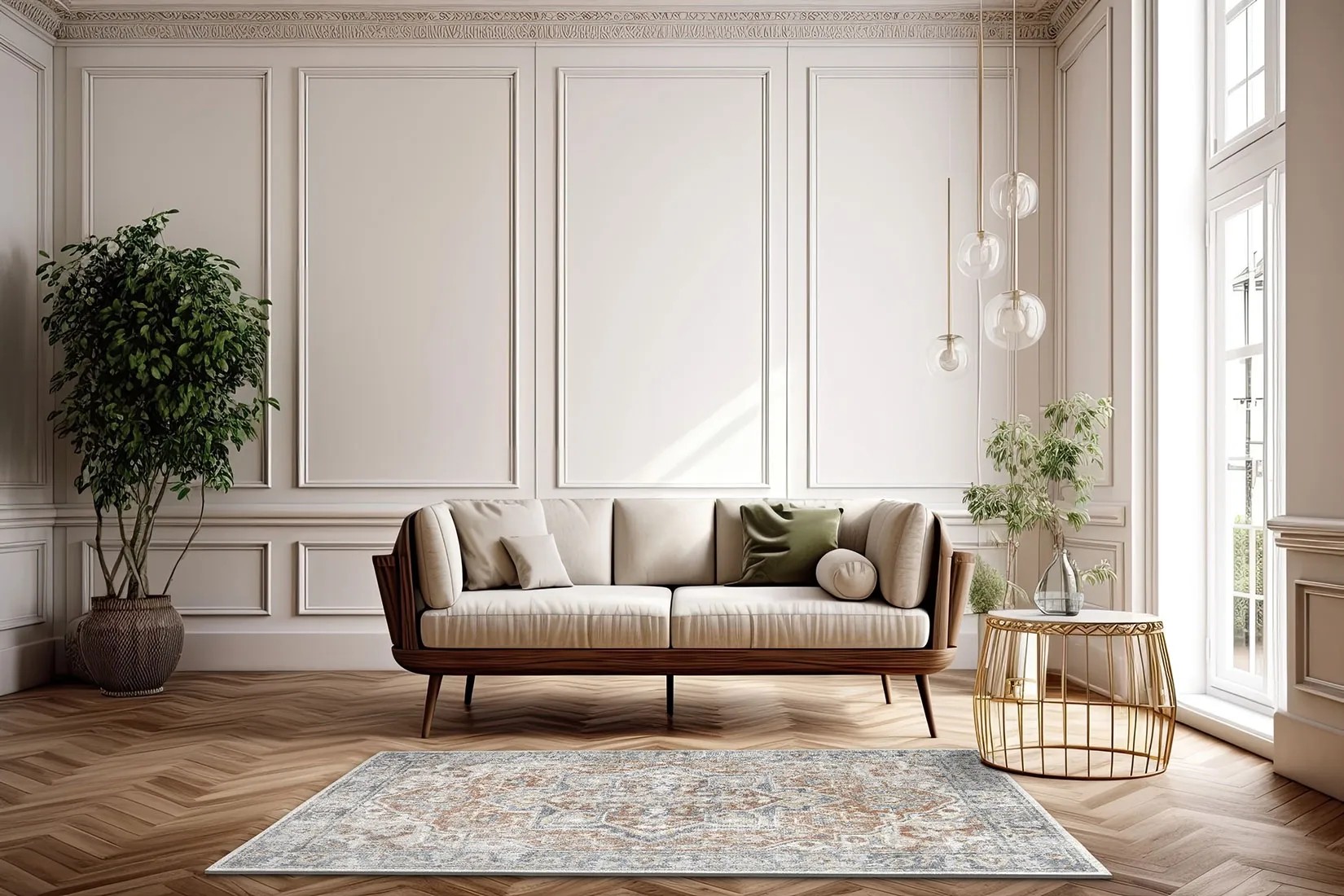 To dywan o sprężystych i gęstych włóknach, które są wytrzymałe na uszkodzenia mechaniczne i łatwe w utrzymaniu czystości. Atrakcyjna cena, w połączeniu z klasycznym wzornictwem pozwoli szybko odświeżyć wnętrze, przy niewielkim nakładzie finansowym.