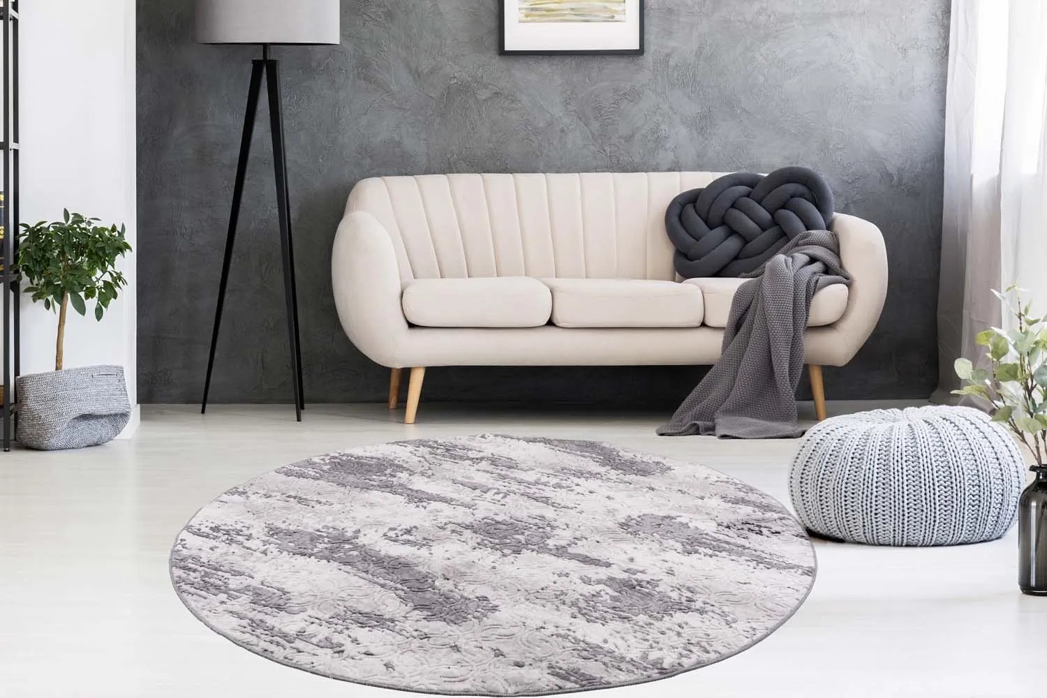 Uniwersalny wzór przecierki w stonowanych kolorach daje elegancką, szykowną kompozycję, która sprawdzi się w różnorodnych wnętrzach, zarówno w przestrzeni domowej, jak i w biurze. Dywany te bez trudu wpiszą się w klasyczne style wnętrzarskie, natomiast w bardziej nowoczesnych aranżacjach będą doskonałym tłem dla wyrazistych dodatków. Dywan w kształcie koła sprawdzi się nawet w niewielkich pomieszczeniach.