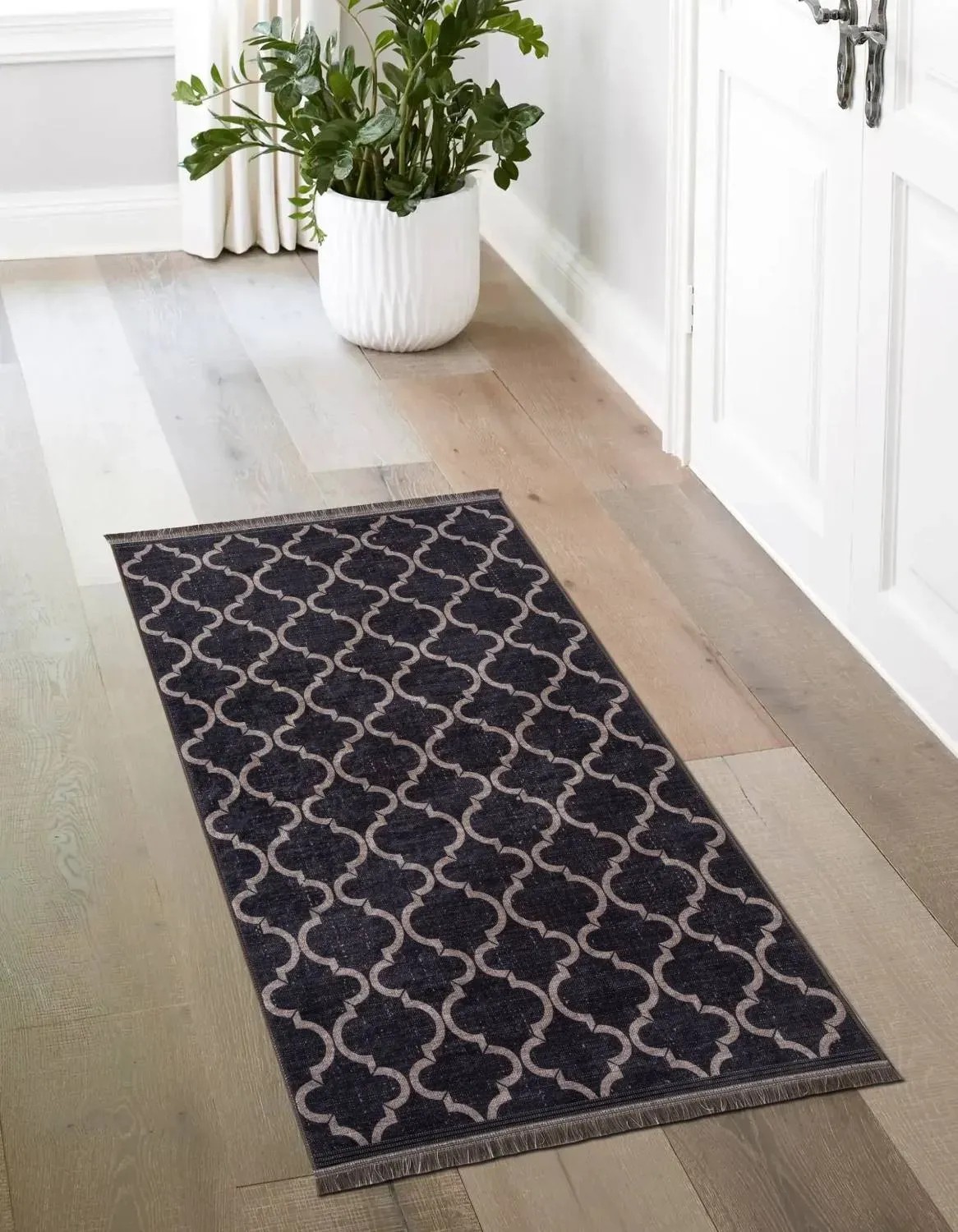 Model SALU to kwintesencja szyku i elegancji, która sprawdzi się w każdej aranżacji, od klasycznie urządzonych wnętrz po pomieszczenia charakteryzujące się nowoczesnym designem. Modny, a jednocześnie ciepły ciemny brąz łączy się z ponadczasowym geometrycznym wzorem, a finezji całości dodaje staranne wykończenie brązowymi frędzlami.
