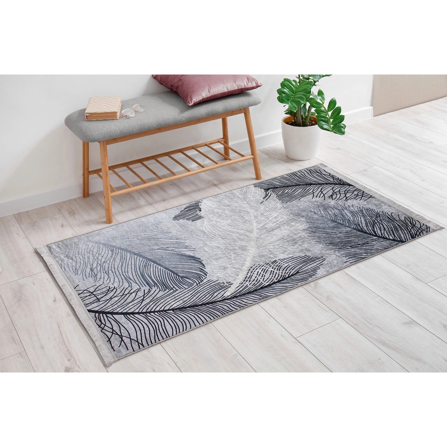 Model SAVA to delikatne i zwiewne pióra w modnych odcieniach szarości i bieli, które tworzą kompozycję pełną elegancji i szyku. Dywan ten wprowadzi nowoczesny akcent do sypialni lub salonu, rozjaśni pomieszczenie oraz nada przestrzeni nową energię i lekkość. Starannie wykończony jasnymi frędzlami inspirowany naturą wzór łączy w sobie wyszukany styl z ponadczasową kolorystyką.