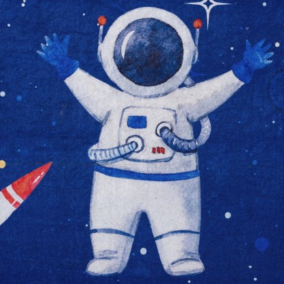 Model SPACE nie tylko wprowadzi dobry humor do pokoju dziecka, będzie również pobudzał wyobraźnię małego odkrywcy każdego dnia. Deseń pełen motywów rodem z przestrzeni kosmicznej jest ciekawy, dynamiczny i wprowadza energię do pomieszczenia. Będzie świetnym miejscem do zabawy, czytania, a także relaksu. Staranne wykończenie w postaci jasnych frędzli dodaje całości lekkości i niepowtarzalnego charakteru.