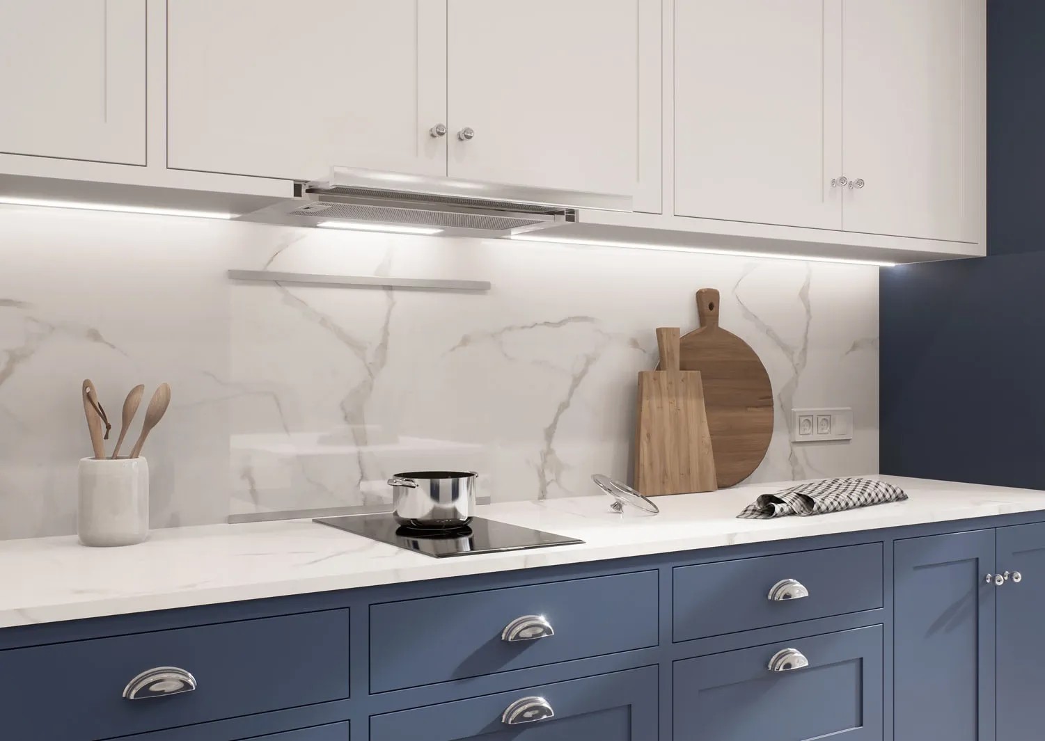 Panel ścienny wykonany ze szkła hartowanego o grubości 5 mm to elegancka i funkcjonalna opcja do kuchni, która skutecznie chroni ścianę przed zabrudzeniami i wilgocią.