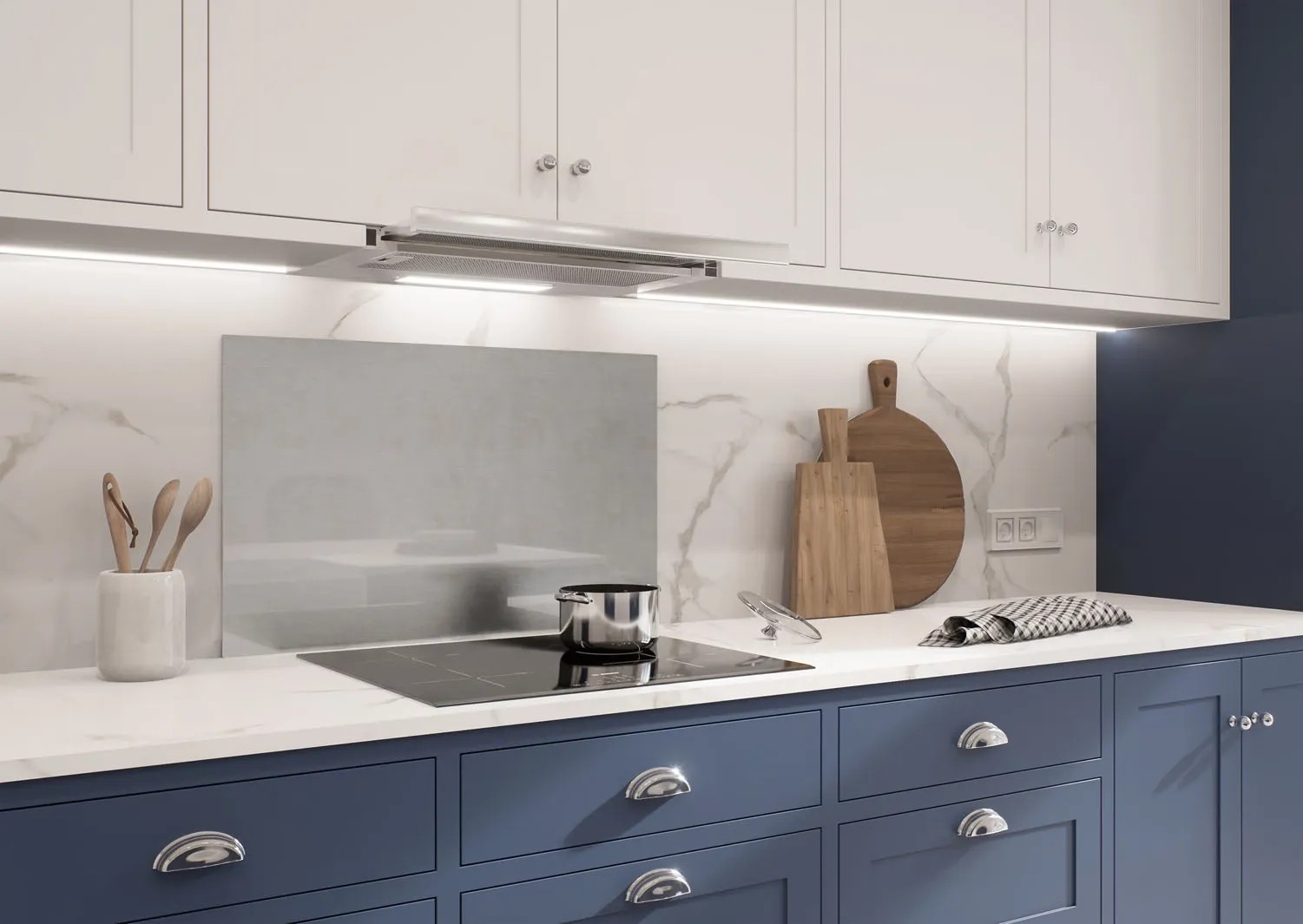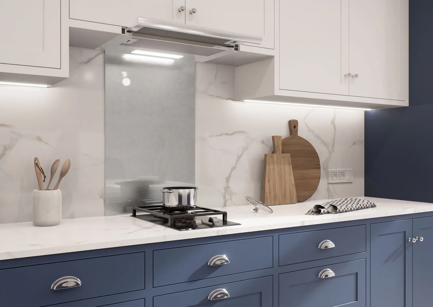 Panel ścienny wykonany ze szkła hartowanego o grubości 5 mm to elegancka i funkcjonalna opcja do kuchni, która skutecznie chroni ścianę przed zabrudzeniami i wilgocią.