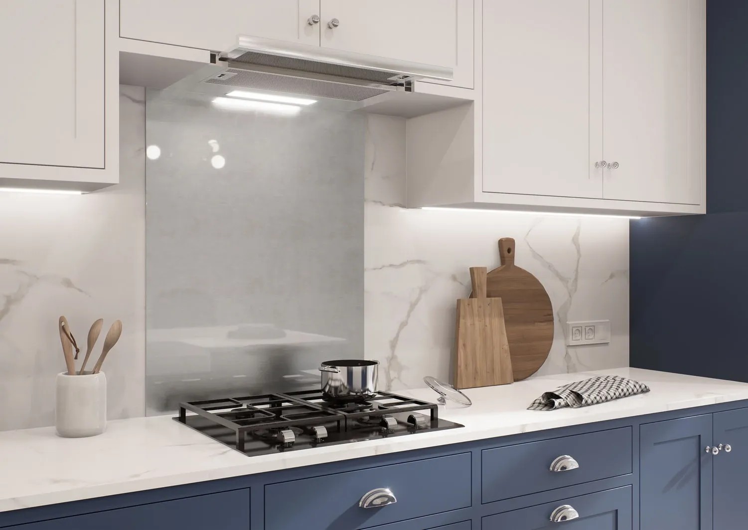 Panel ścienny wykonany ze szkła hartowanego o grubości 5 mm to elegancka i funkcjonalna opcja do kuchni, która skutecznie chroni ścianę przed zabrudzeniami i wilgocią.