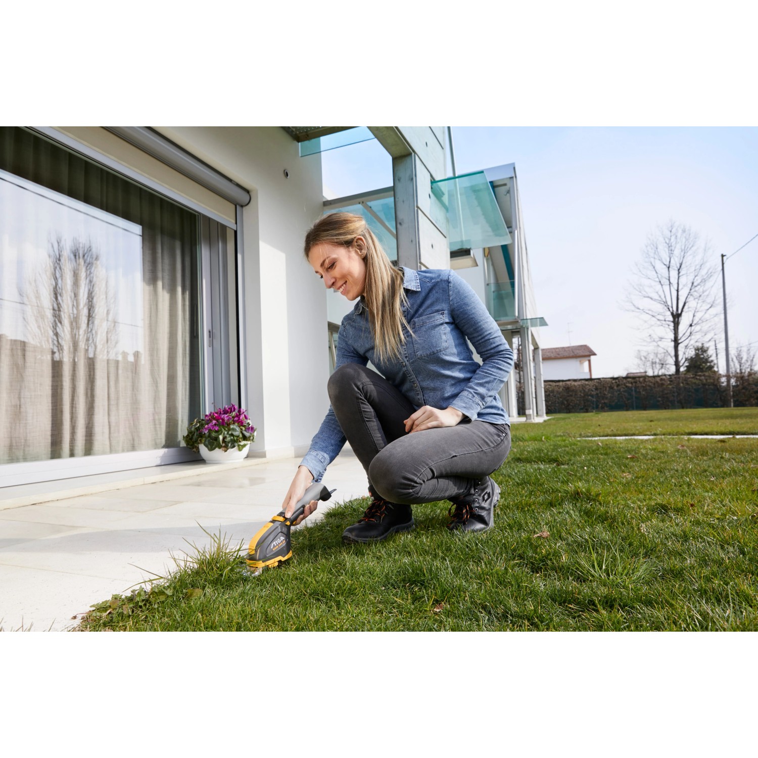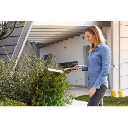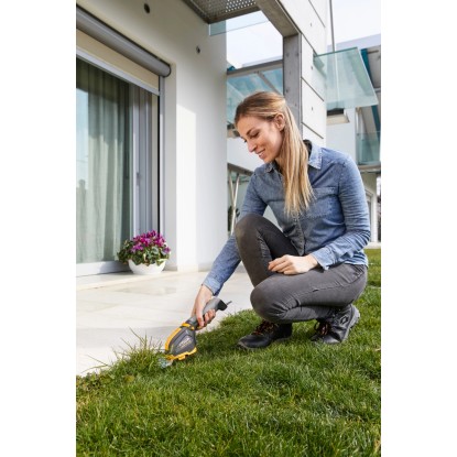 SGM 72 AE posiada 8-centymetrowe ostrze do korygowania krawędzi trawnika, umożliwiając precyzyjne przycinanie i nadawanie trawnikowi estetycznego wyglądu. Dodatkowo, 18-centymetrowe ostrze do żywopłotu pozwala na skuteczne i równomierne przycinanie żywopłotów oraz innych roślin ozdobnych.