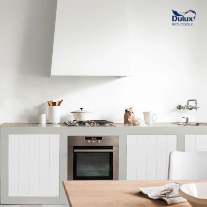 Emulsja Dulux z serii Easy Care Kuchnia i Łazienka w kolorze białym to nowoczesna lateksowa farba do ścian i sufitów. Jest odporna na szorowanie, przeznaczona do dekoracyjnego i ochronnego malowania powierzchni narażonych na zabrudzenia, kondensację pary wodnej oraz działanie tłuszczu, np. w kuchni lub łazience. Emulsja tworzy trwałą powłokę odporną na działanie grzybów pleśniowych, a dzięki paroprzepuszczalności umożliwia ścianom oddychanie. Easy Care Kuchnia i Łazienka doskonale pokrywa tynki cementowo-wapienne, podłoża betonowe i gipsowe, płyty kartonowo-gipsowe oraz tapety papierowe i z włókna szklanego. Emulsja bardzo łatwo się rozprowadza, a odpowiednia struktura sprawia, że farba nie chlapie przy malowaniu. Jest wysoce wydajna, 1 l pozwala na pomalowanie do 14 m2 powierzchni.