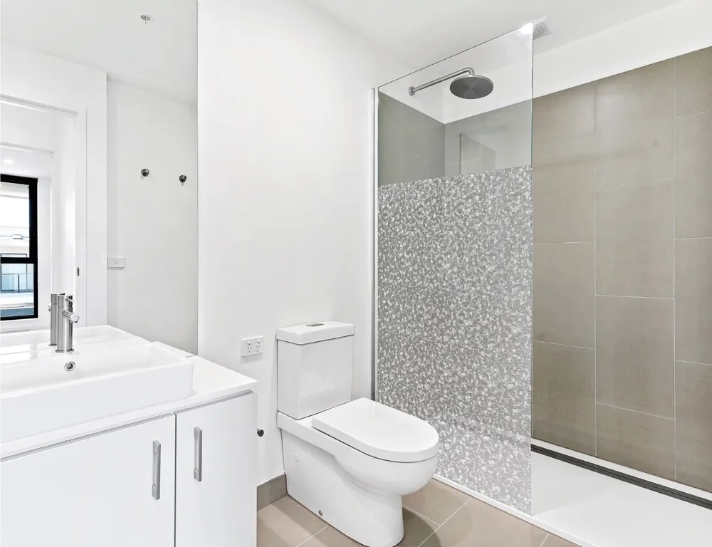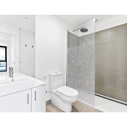 Folia statyczna może także służyć do dekoracji szyby prysznicowej. Pamiętaj jednak, że możesz nakleić ją tylko na zewnętrznej stronie kabiny prysznicowej.
