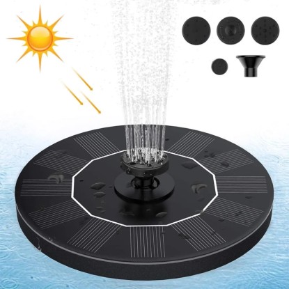 Pływająca fontanna stanowi ciekawy element dekoracyjny oczek wodnych. 6 różnych dysz umożliwia zmianę strumienia wody. Zasilanie słoneczne. Nie wymaga dodatkowej pompy.