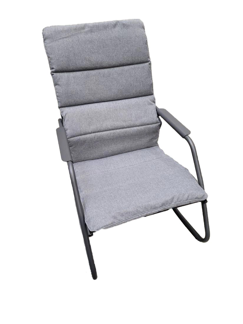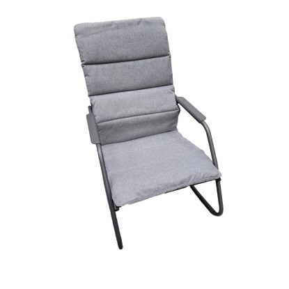 Fotel Gaviotas składa się ze stalowej ramy w kolorze antracytowym z przyjemnym w dotyku, wygodnym pokryciem wykonanym z szarej tkaniny. Maksymalne dopuszczalne obciążenie mebla wynosi 110 kg.