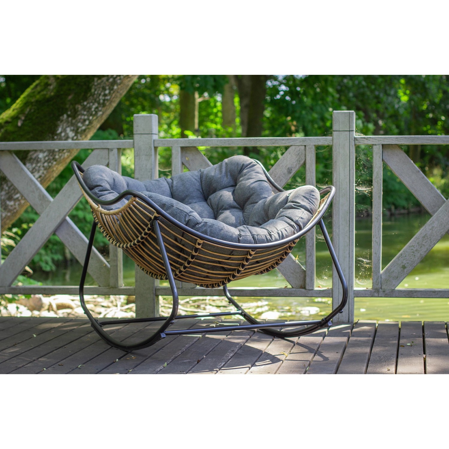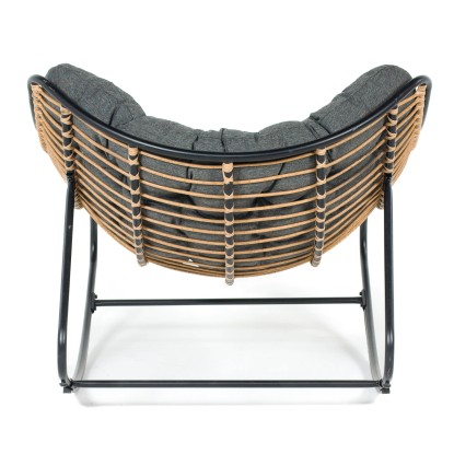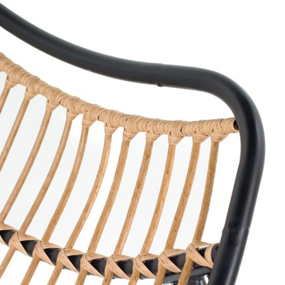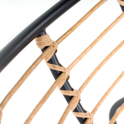 Steaż fotela wykonany jest ze stali. Technorattanowe elementy wykazują odporność na działanie warunków atmosferycznych, dzięki czemu nie musisz obawiać się trzymania fotela na zewnątrz. Poduszka wykonana ze spunpoliestru jest łatwa do czyszczenia.