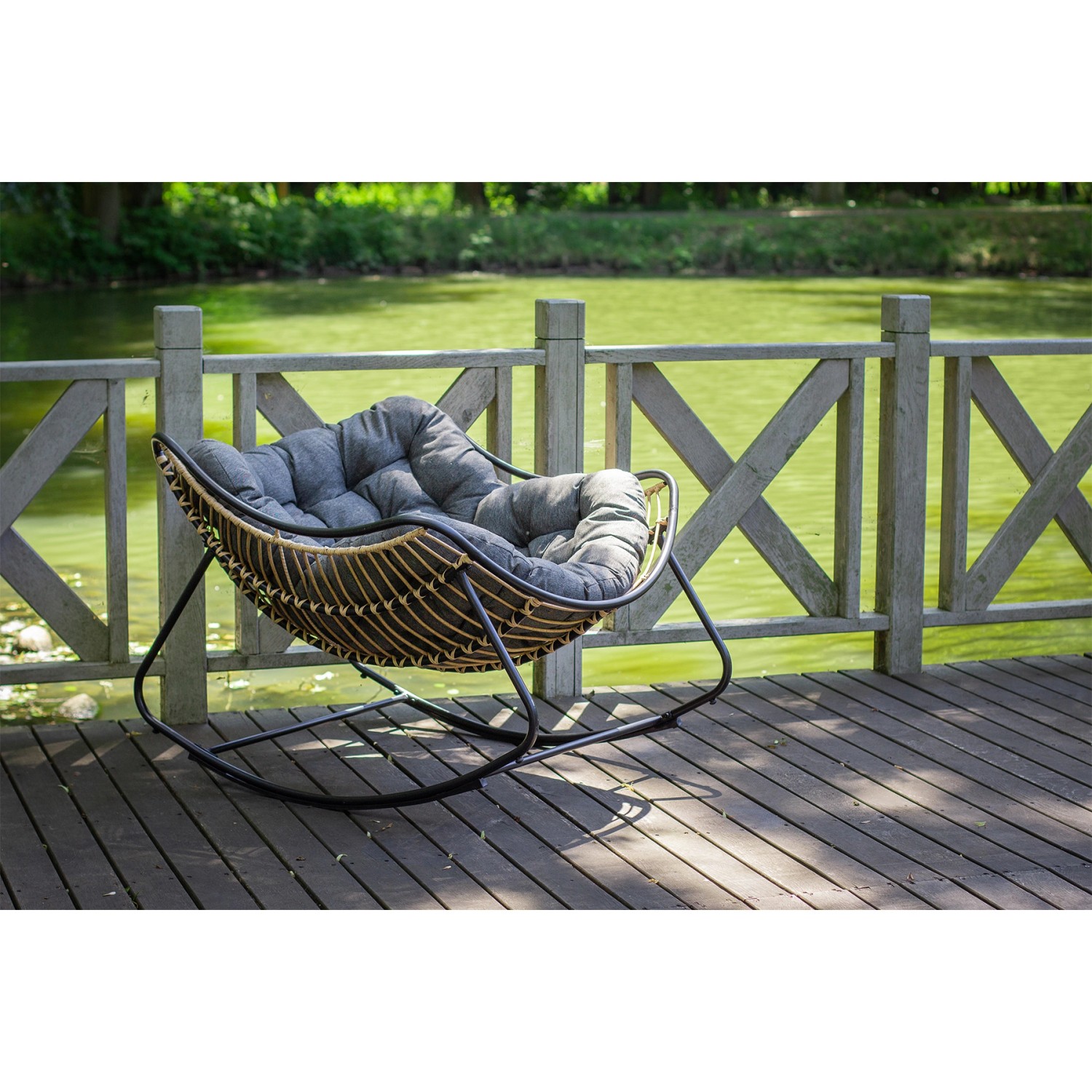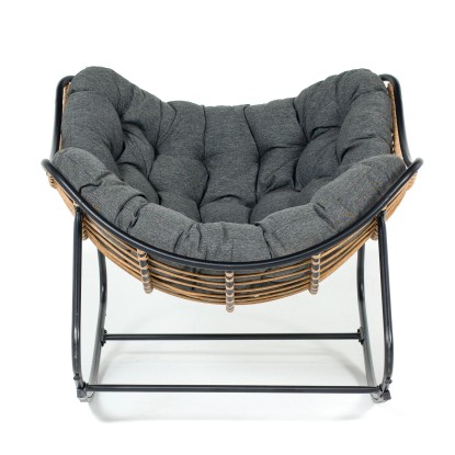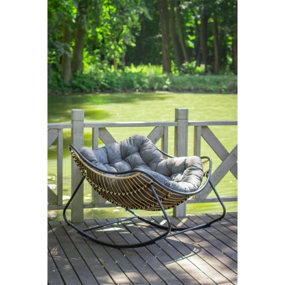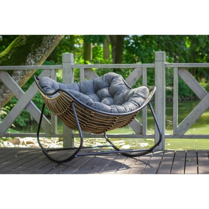 Bujany fotel sprzyja odpoczynkowi. Delikatne bujanie relaksuje i uwalnia od stresu. Gruba poduszka siedziska zapewnia wygodę siedzenia.