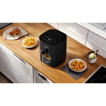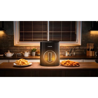 Pojemność 6 litrów sprawia, że urządzenie bez problemu przygotuje posiłek dla całej rodziny - od dużej porcji frytek, przez całego kurczaka, aż po kilka składników jednocześnie. To koniec gotowania "na raty", typowego dla mniejszych modeli. Dwie niezależne grzałki umieszczone na górze i na dole gwarantują równomierne pieczenie, większą chrupkość i brak konieczności przewracania jedzenia w trakcie przygotowywania. Efekt jest zbliżony do pieczenia w piekarniku, ale szybszy i znacznie bardziej energooszczędny.