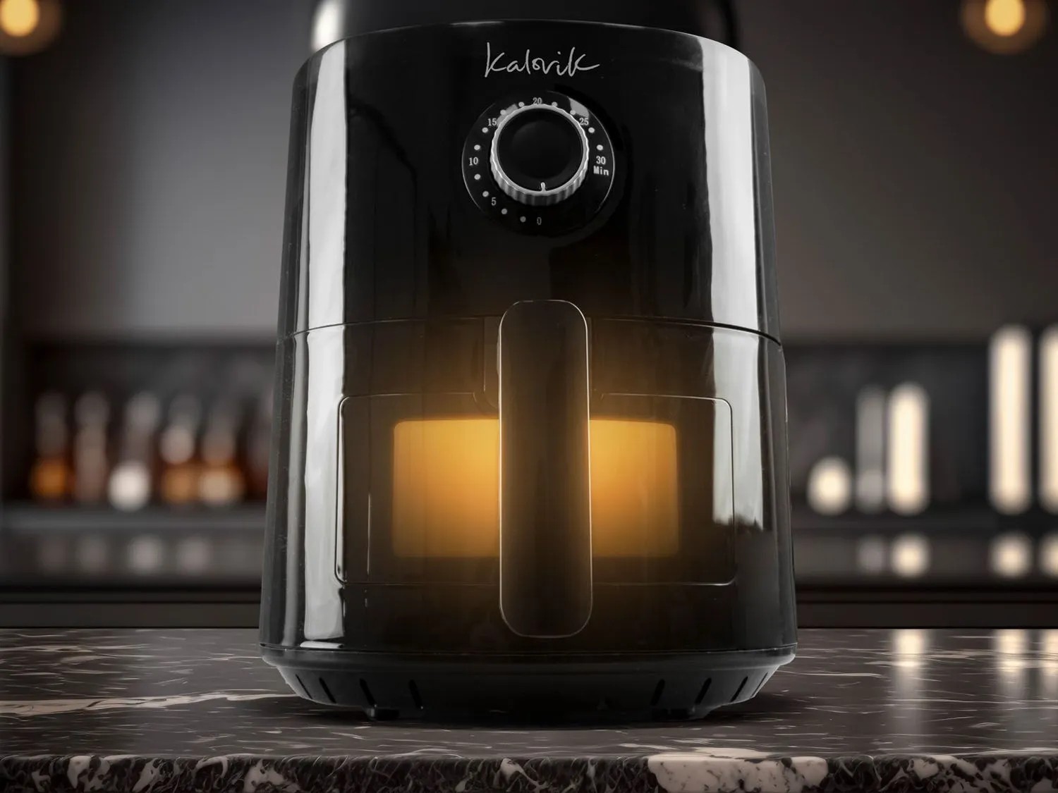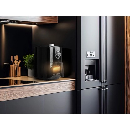 Frytkownica wyróżnia się również eleganckim designem - czarna obudowa, przezroczyste okno i wewnętrzne oświetlenie LED umożliwiają obserwowanie potraw podczas pieczenia. Urządzenie jest bezpieczne w użytkowaniu dzięki automatycznemu wyłączaniu oraz zabezpieczeniu przed przegrzaniem.