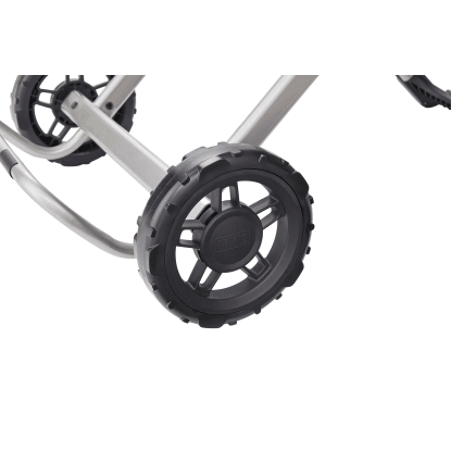 Mobilność tego modelu jest zapewniona dzięki kółkom, które ułatwiają przemieszczanie go z miejsca na miejsce, sprawiając, że grillowanie na świeżym powietrzu staje się jeszcze bardziej wygodne i przyjemne.