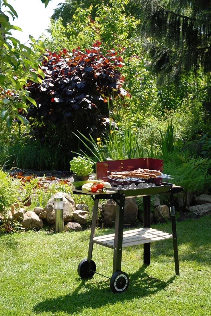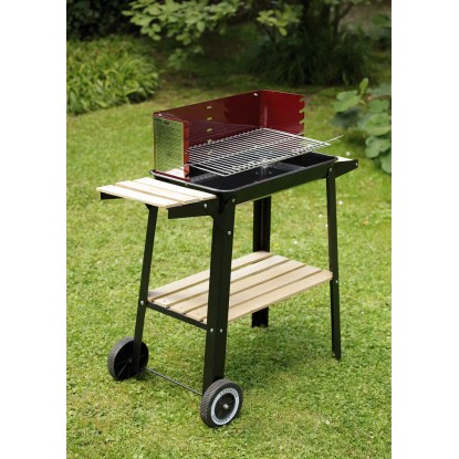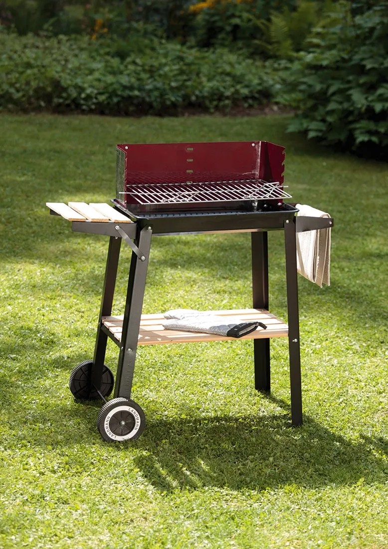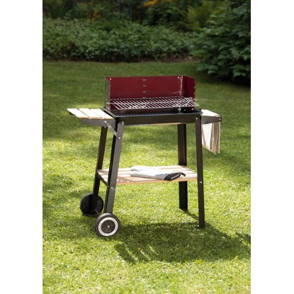 Mobilność grilla gwarantują dwa koła. Dzięki nim przetransportujesz lub ustawisz urządzenie w dowolnym miejscu w ogrodzie lub na tarasie. Dodatkowo posiada praktyczną rączkę wykończoną drewnem. Ten grill węglowy wykonano z emaliowanej blachy stalowej, dzięki czemu jest lżejszy w porównaniu z grillami gazowymi.