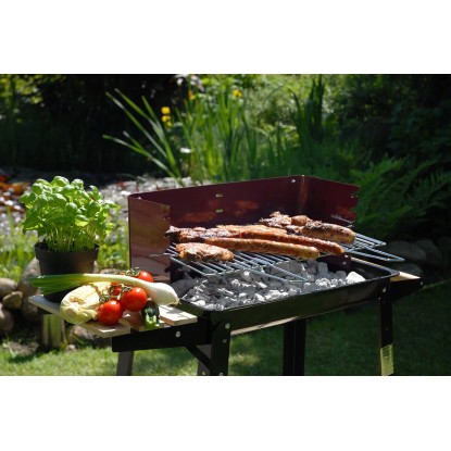 Grill węglowy prostokątny - wózek z miską 54 x 33 cm