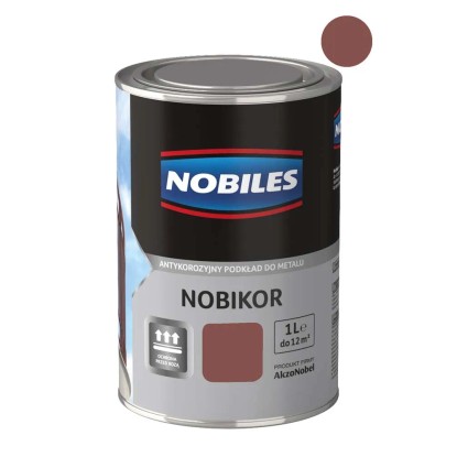 Ftalowy podkład antykorozyjny NOBILES Nobikor w kolorze czerwony tlenkowy przeznaczona jest do zabezpieczania przed korozją powierzchni stalowych i żeliwnych pod wyroby ftalowe, ftalowe karbamidowe, nitrocelulozowe i chlorokauczukowe.
