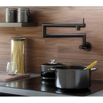 Potfiller to elegancki i funkcjonalny dodatek w stylowym kolorze czarnym, doskonale pasujący do nowoczesnych kuchni. Montowany nad kuchenką lub płytą grzewczą, pozwala wygodnie napełniać garnki bez konieczności ich przenoszenia. Rozkładana konstrukcja oszczędza miejsce i zapewnia pełną swobodę ruchu, zmniejszając ryzyko rozlania wody. Wykonany z odpornej na korozję stali nierdzewnej, potfiller wyróżnia się trwałością i nowoczesnym designem, który spełnia oczekiwania wymagających użytkowników. Produkt objęty jest 10-letnią gwarancją.