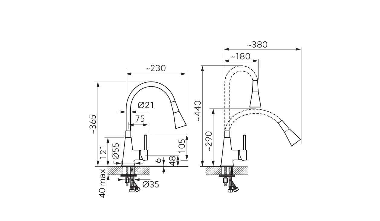 Nowoczesna bateria kuchenna wyposażona w charakterystyczną elastyczną wylewkę, której atutem jest możliwość przybierania dowolnego kształtu zgodnego z potrzebą użytkownika. Dzięki temu woda dotrze do najdalszych zakamarków naczyń i zlewozmywaka.