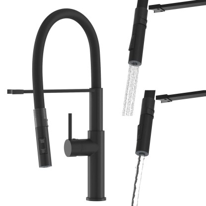 Giętka i wyciągana wylewka pozwala na swobodne kierowanie strumieniem wody,co znacznie ułatwia mycie naczyń,warzyw oraz napełnianie dużych garnków.Obrotowa wylewka 360° oraz dwufunkcyjna słuchawka umożliwiają wybór pomiędzy klasycznym strumieniem a trybem natryskowym,zapewniając maksymalną wygodę i wydajność użytkowania.