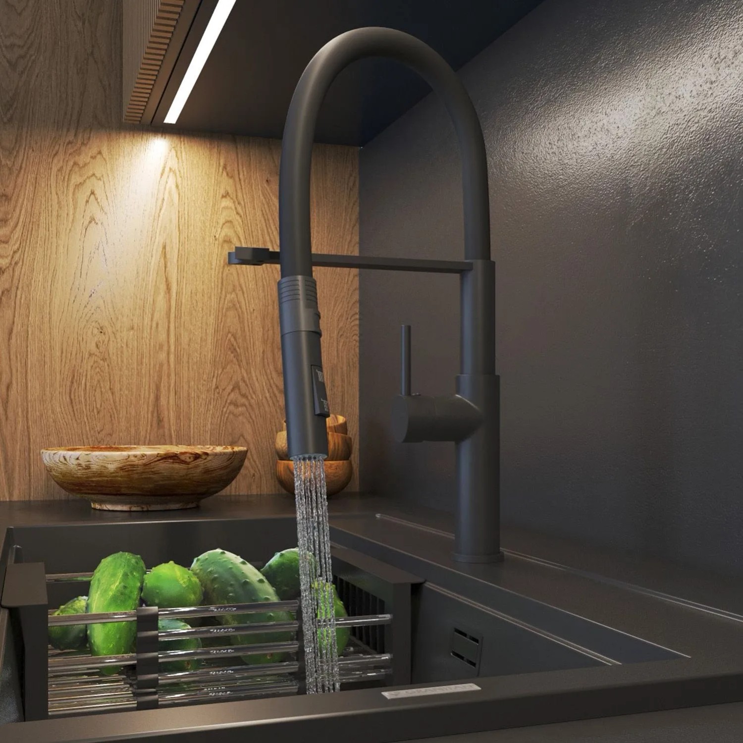 Bateria kuchenna Granitan Soria z elastyczną wylewką to połączenie innowacyjnej funkcjonalności i eleganckiego designu.Nowoczesna forma oraz czarne wykończenie sprawiają,że bateria doskonale wpasuje się w każdą kuchenną aranżację,zarówno nowoczesną,jak i loftową.Stworzona z myślą o codziennym komforcie,ułatwia wykonywanie wszystkich kuchennych czynności.