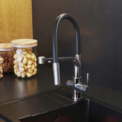 Przedstawiamy nowoczesną trójdrożną baterię kuchenną NODE do filtra wody w eleganckim chromowym wykończeniu.To idealne połączenie estetyki i praktyczności stworzone z myślą o osobach ceniących wygodę i styl.Jedna bateria umożliwia korzystanie z wody zimnej,ciepłej oraz filtrowanej,co czyni ją niezwykle funkcjonalnym i oszczędnym rozwiązaniem.Elegancki design doskonale wkomponuje się w każde wnętrze,podkreślając nowoczesny charakter kuchni.