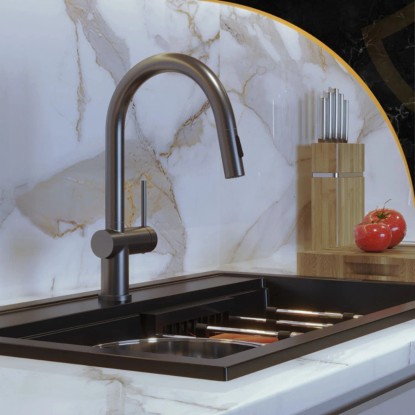 Granitan Bateria kuchenna z wyciąganą wylewką Naya gun grey