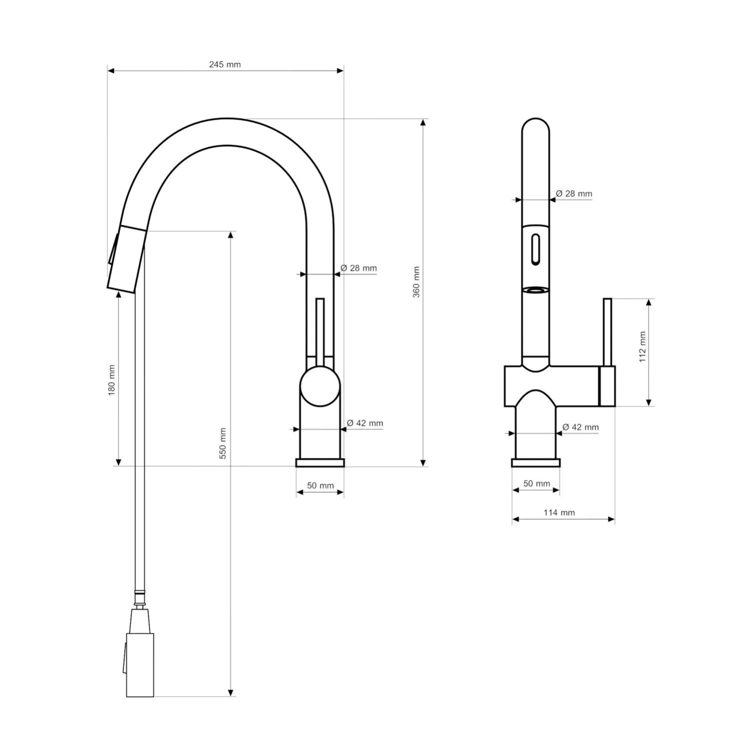 Długość wyciąganego węża 55cm
