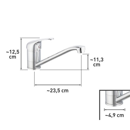 Długa i ergonomiczna wylewka ułatwia codzienne prace. Bateria wyposażona jest w ceramiczną głowicę, co gwarantuje jej płynne i niezawodne działanie przez długi czas. Do zestawu dołączone są dwa wężyki przyłączeniowe w rozmiarze 3/8 o długości 35 cm, co ułatwia instalację.
