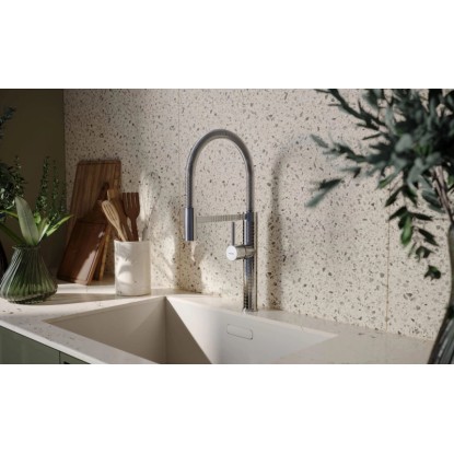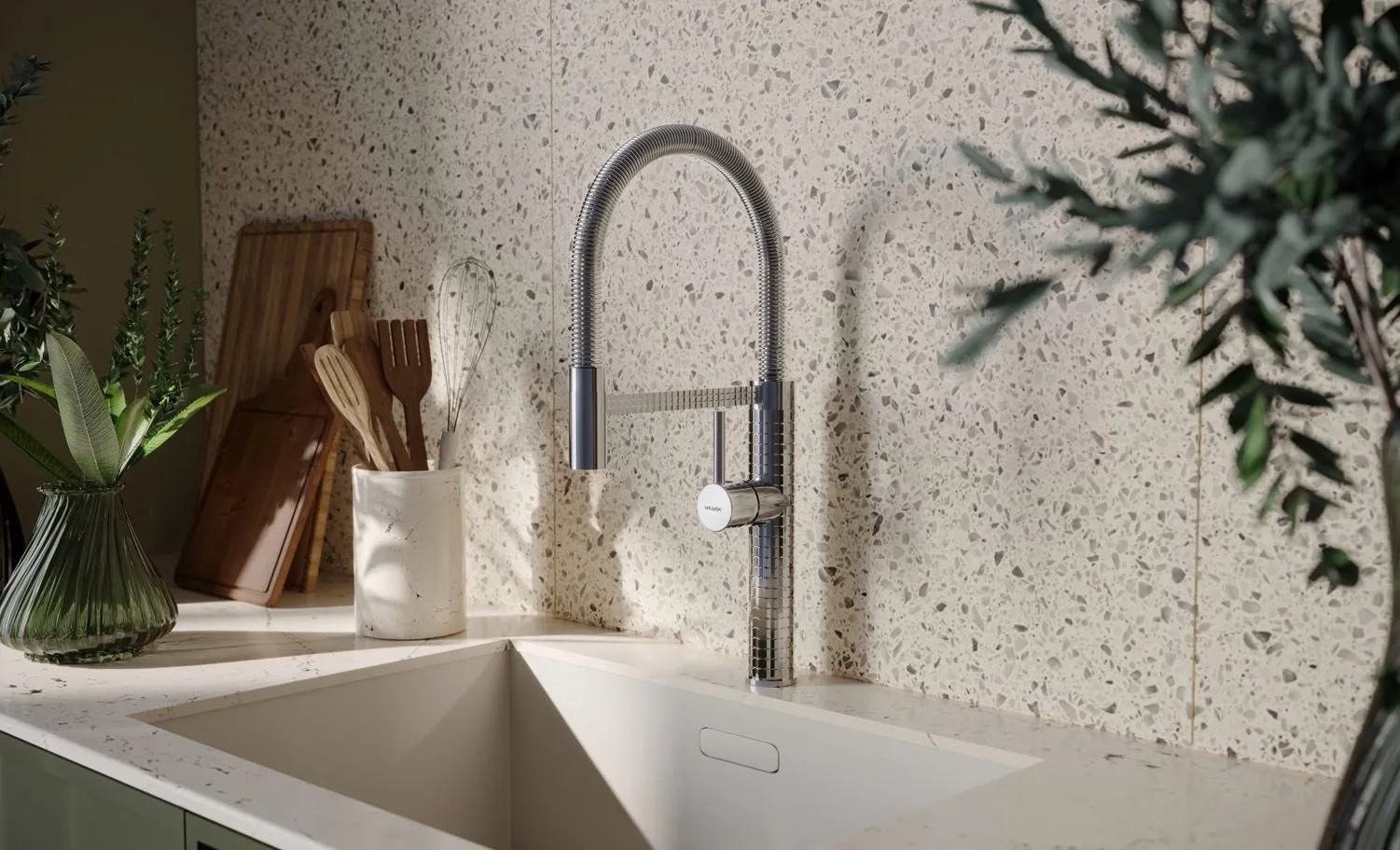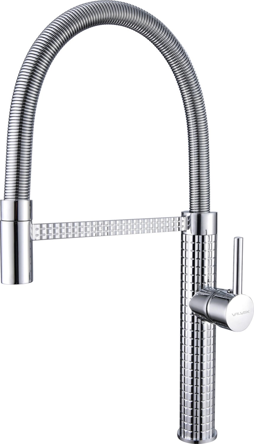 Bateria kuchenna Valvex Decoro to solidny wybór, który łączy funkcjonalność z nowoczesnym designem. Wyposażona w ceramiczną głowicę, zapewnia precyzyjną i trwałą regulację przepływu wody. Wężyk przyłączeniowy ma długość 40 cm (M10 - 3/8"), co ułatwia montaż.