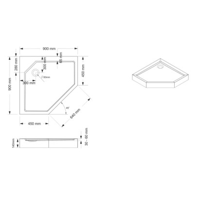 Wymiary kabiny: 90 cm x 90 cm x 225 cm.