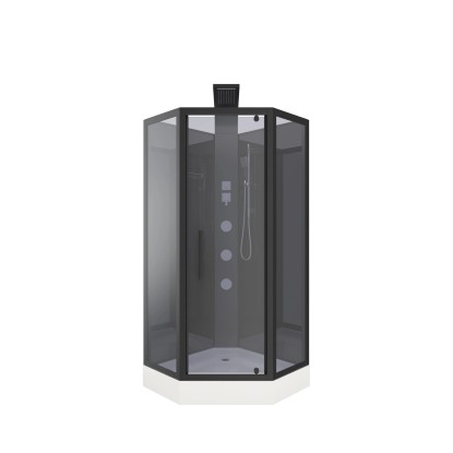 Jest to wysokiej jakości, narożna kabina prysznicowa wykonana z hartowanego przyciemnionego szkła o grubości 6 mm w drzwiach oraz 4 mm w ściankach bocznych.