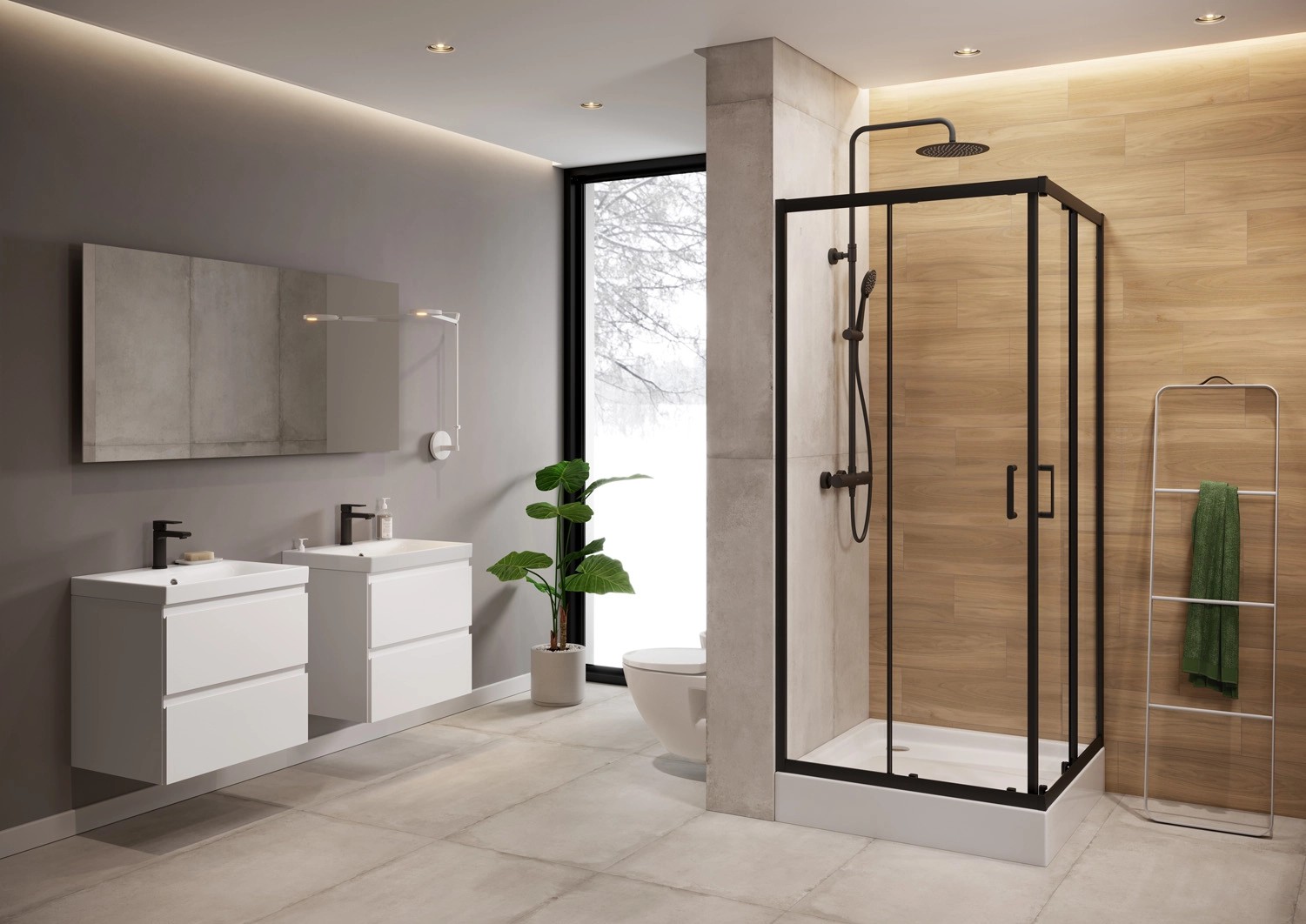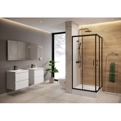 Kwadratowa kabina prysznicowa marki Cersanit będzie doskonale pasować do większości łazienek, a dzięki eleganckiemu wykończeniu w czarnym kolorze, oprócz walorów praktycznych, kabina będzie również stanowić ozdobę wnętrza.