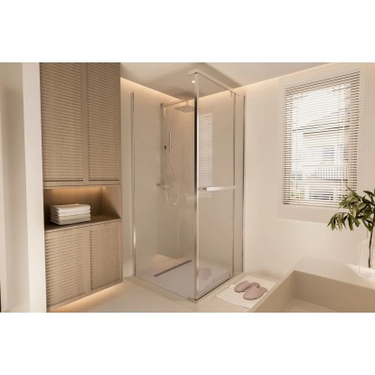 Dostępna w dwóch modnych kolorach - klasycznym chromie oraz matowej czerni - doskonale wpisuje się w różne style aranżacyjne, od minimalistycznych po loftowe. Transparentne szkło o grubości 6 mm nadaje kabinie lekkości i optycznie powiększa przestrzeń. Wysokość 195 cm gwarantuje komfort nawet dla wyższych użytkowników, a wygodny, stylowy uchwyt pełni nie tylko funkcję estetyczną, ale też praktyczną - umożliwia zawieszenie ręcznika zawsze w zasięgu ręki.