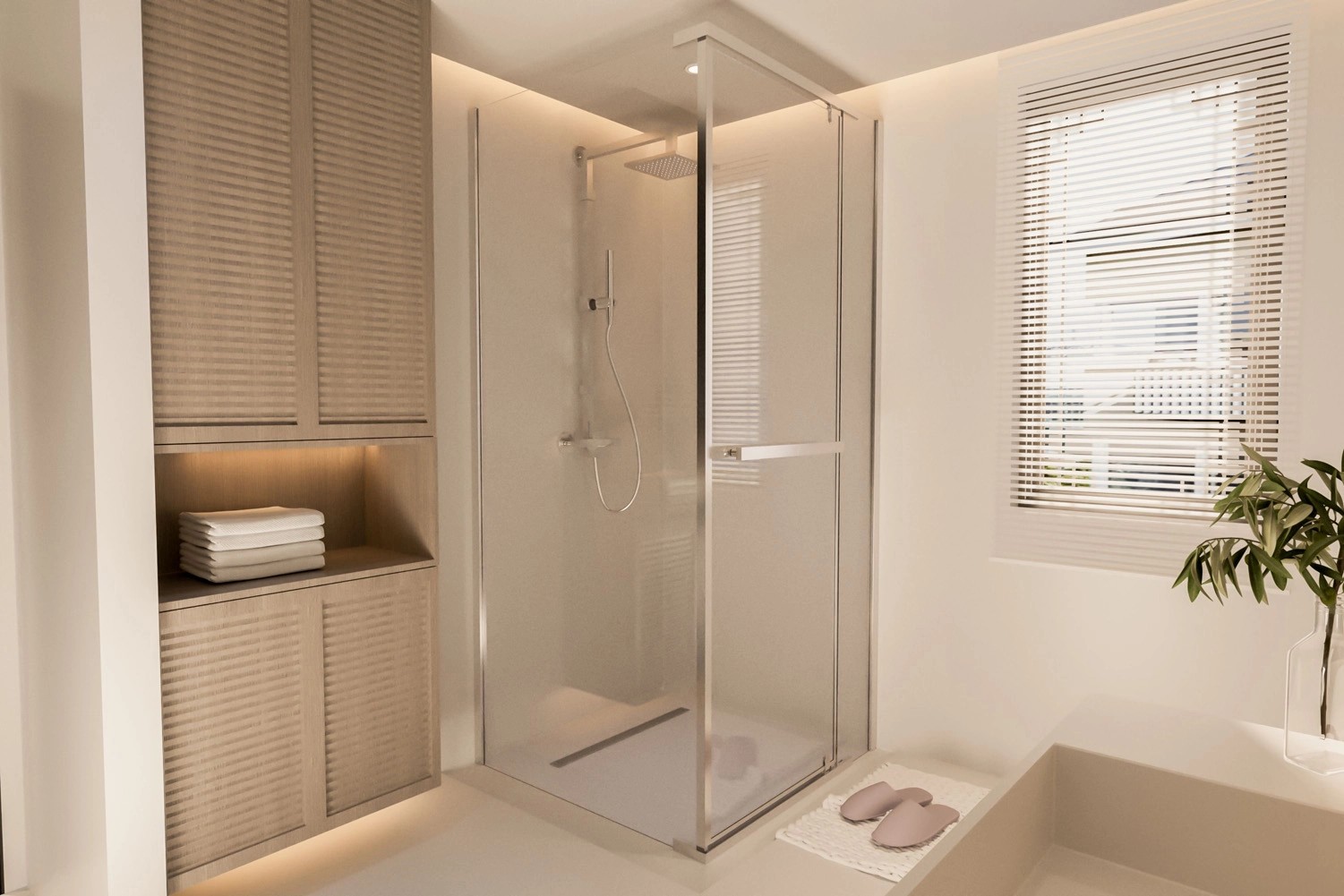 Kabina prysznicowa CONCEPTO marki Durasan to stylowa propozycja dla tych, którzy cenią elegancki design i komfort użytkowania. Wyróżnia się nowoczesną bryłą oraz praktycznymi drzwiami uchylnymi, które zapewniają wygodne wejście nawet w mniejszych łazienkach.