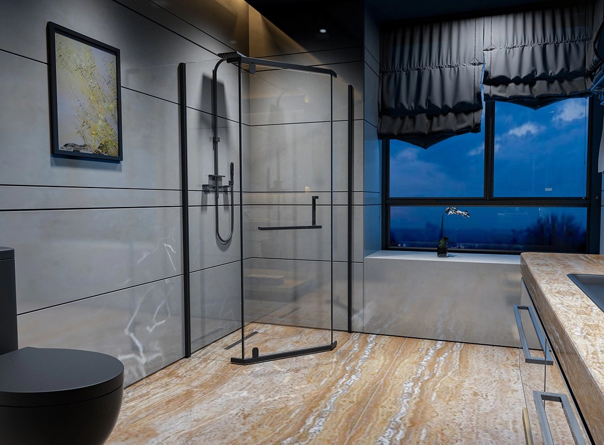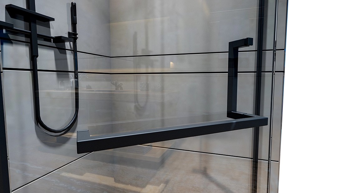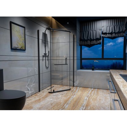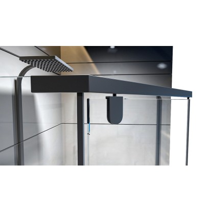 Wyposażona jest w drzwi 1-skrzydłowe uchylne, a geometryczne kształty i czarne elementy sprawiają, że kabina świetnie się prezentuję w połączeniu z każdym stylem.