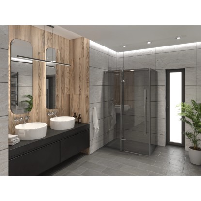 Kabina FERRARA 120 DARK wyróżnia się przyciemnianym szkłem o grubości 6 mm, które nadaje jej wyjątkowy, luksusowy charakter, jednocześnie zapewniając trwałość i wytrzymałość. Uchylne skrzydło kabiny wyposażone jest w duży, ergonomiczny uchwyt oraz magnetyczną uszczelkę, która gwarantuje szczelność konstrukcji, skutecznie chroniąc łazienkę przed wodą. Błyszczące chromowane profile dodają kabinie nowoczesnego i eleganckiego wyglądu, a także umożliwiają niwelację krzywizn ścian, co ułatwia precyzyjny montaż.