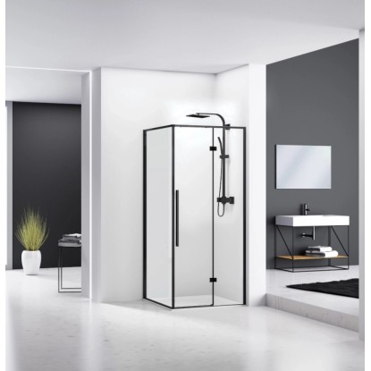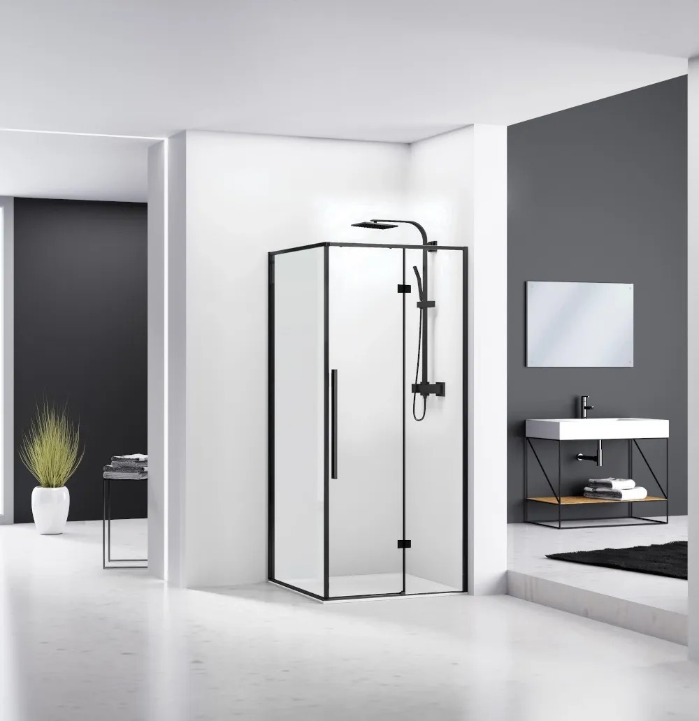 Transparentne szkło o grubości 6 mm, czarne, matowe profile i wygodne drzwi jednoskrzydłowe - wszystko po to aby w pełni spełnić oczekiwania każdego użytkownika.