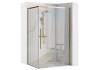 Kolor złoty to zdecydowany lider na rynku wyposażenia wnętrz łazienkowych. Kabina uniwersalna - możliwość montażu z drzwiami po prawej lub lewej stronie.