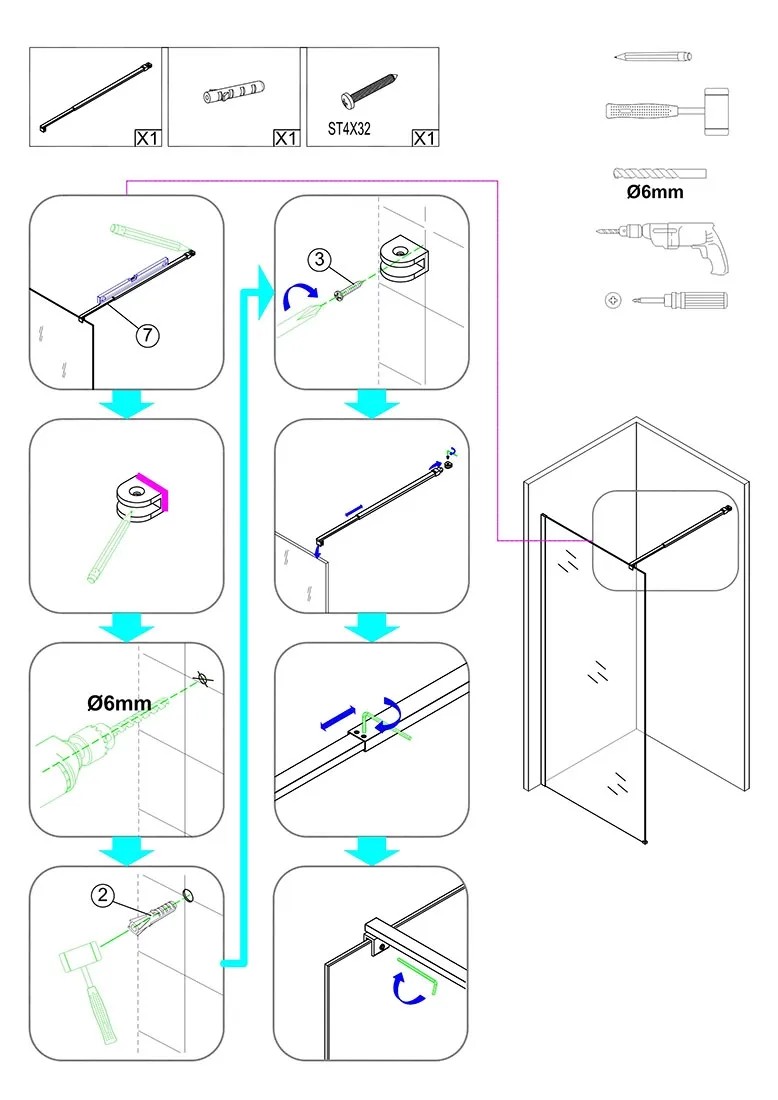 Regulowany wspornik przeznaczony do kabin walk-in. Wykonany ze stali nierdzewnej w efektownym złotym kolorze. Posiada rozstaw 70-120 cm.